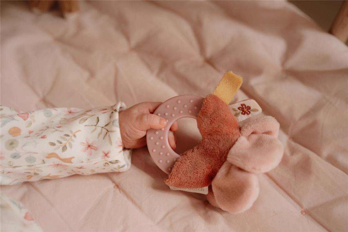 - Y la linda flor del mordedor estimula la coordinación mano-ojo y la curiosidad en los bebés.