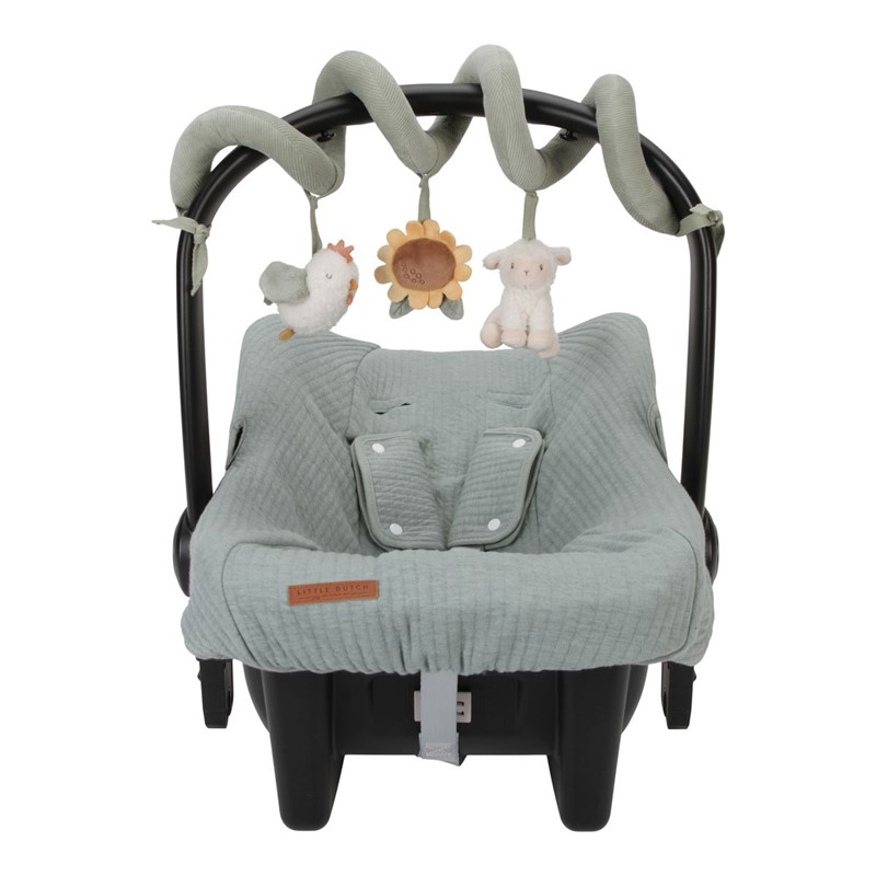 - Conecta fácilmente este práctico juguete a cualquier cosa, desde una cuna, la silla de paseo o una silla para el coche.
