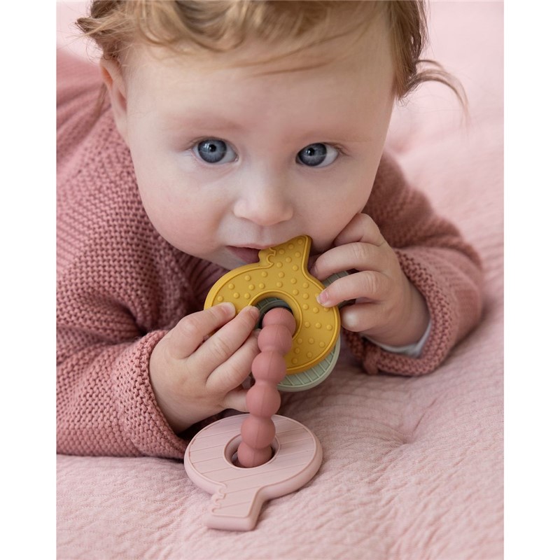 La aparición de los primeros dientes es un hito pero no siempre cómodo para tu bebé. Para suavizar el dolor Little Dutch ha creado este juguete mordedor con forma de llavero.
