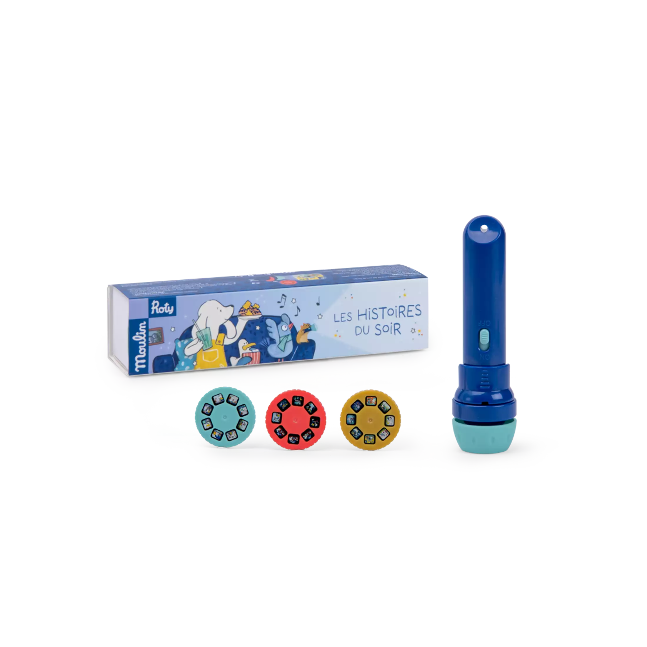 Imaginar i explicar històries es converteix en un joc de nens amb aquesta llanterna! Inclou una llum de projecció i 3 discs per inspirar històries meravelloses abans d’anar a dormir. Apaga la llum perquè la màgia succeeixi, i que comenci la màgia…