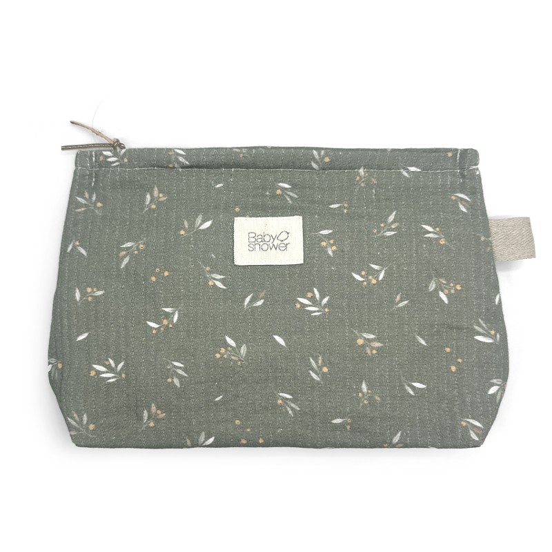 Bosseta amb cremallera de mida intermèdia ideal per col·locar bolquers, cremes i altres productes que vulguis portar al cotxet. Interior plastificat i tirador lateral de lli.